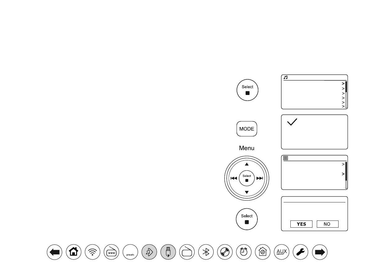 1. Press Mode as needed until the Music Player mode is shown. If needed press
