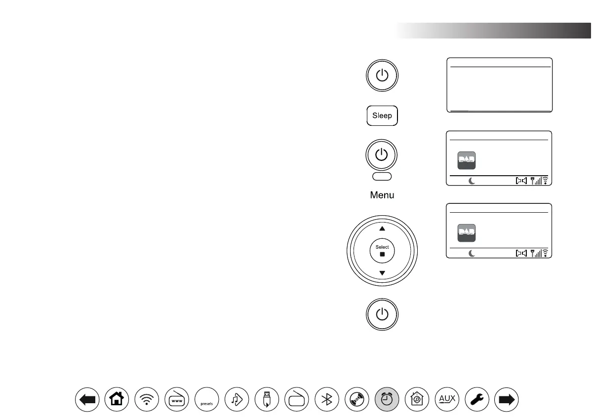 menu', 'Sleep' and the required sleep time. Press Select to conrm the setting.