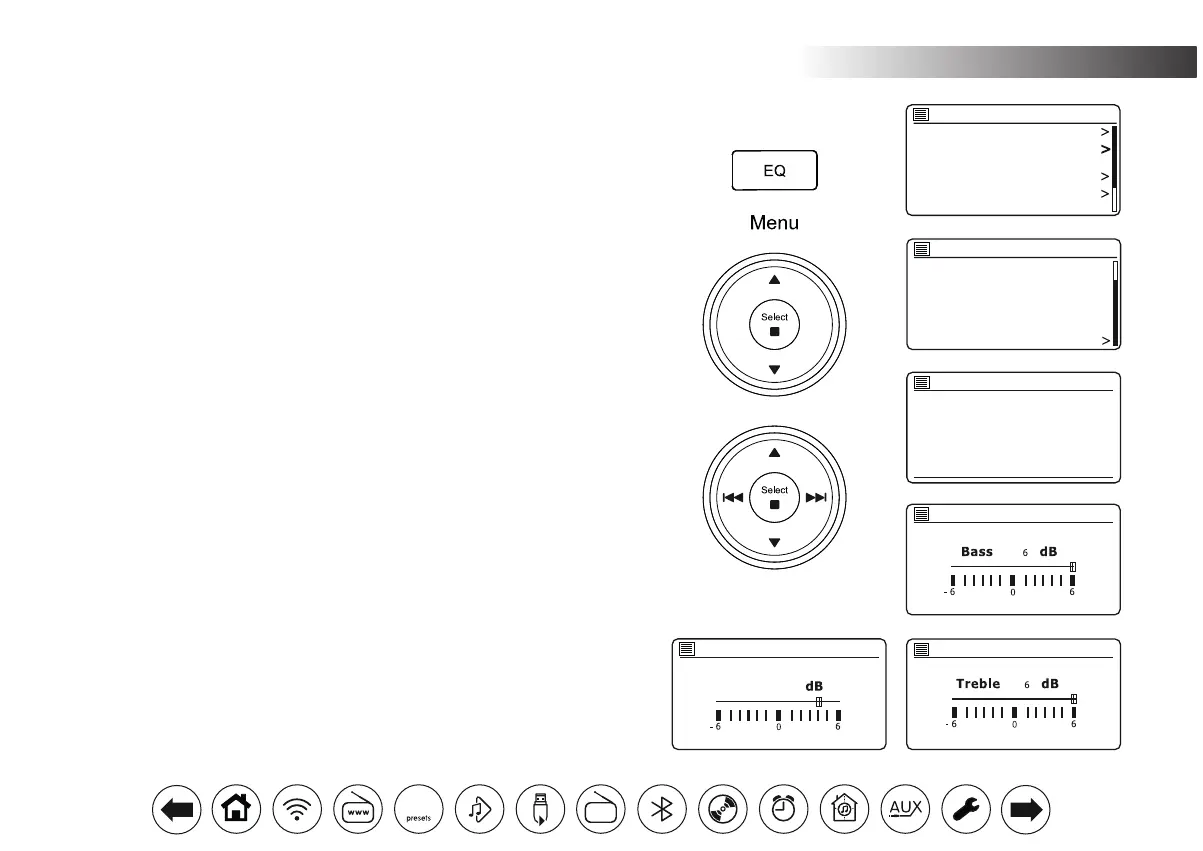 Note: When listening on headphones only the Bass and Treble settings are used.
