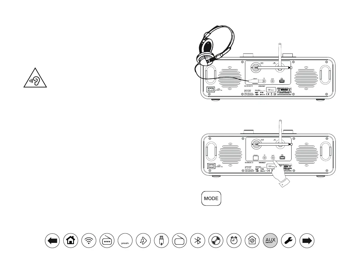 connecting headphones to the audio system. IMPORTANT: Excessive sound