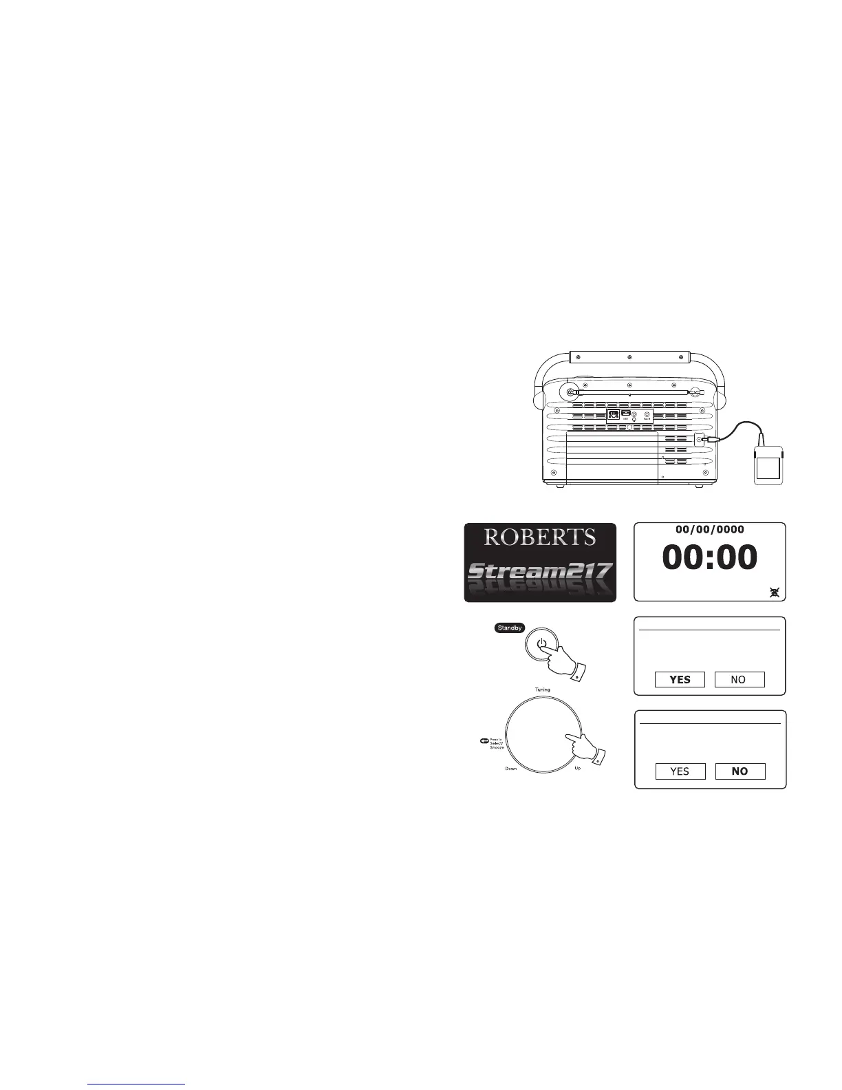 'ROBERTS' and 'Stream 217'. After a few seconds the radio will then enter