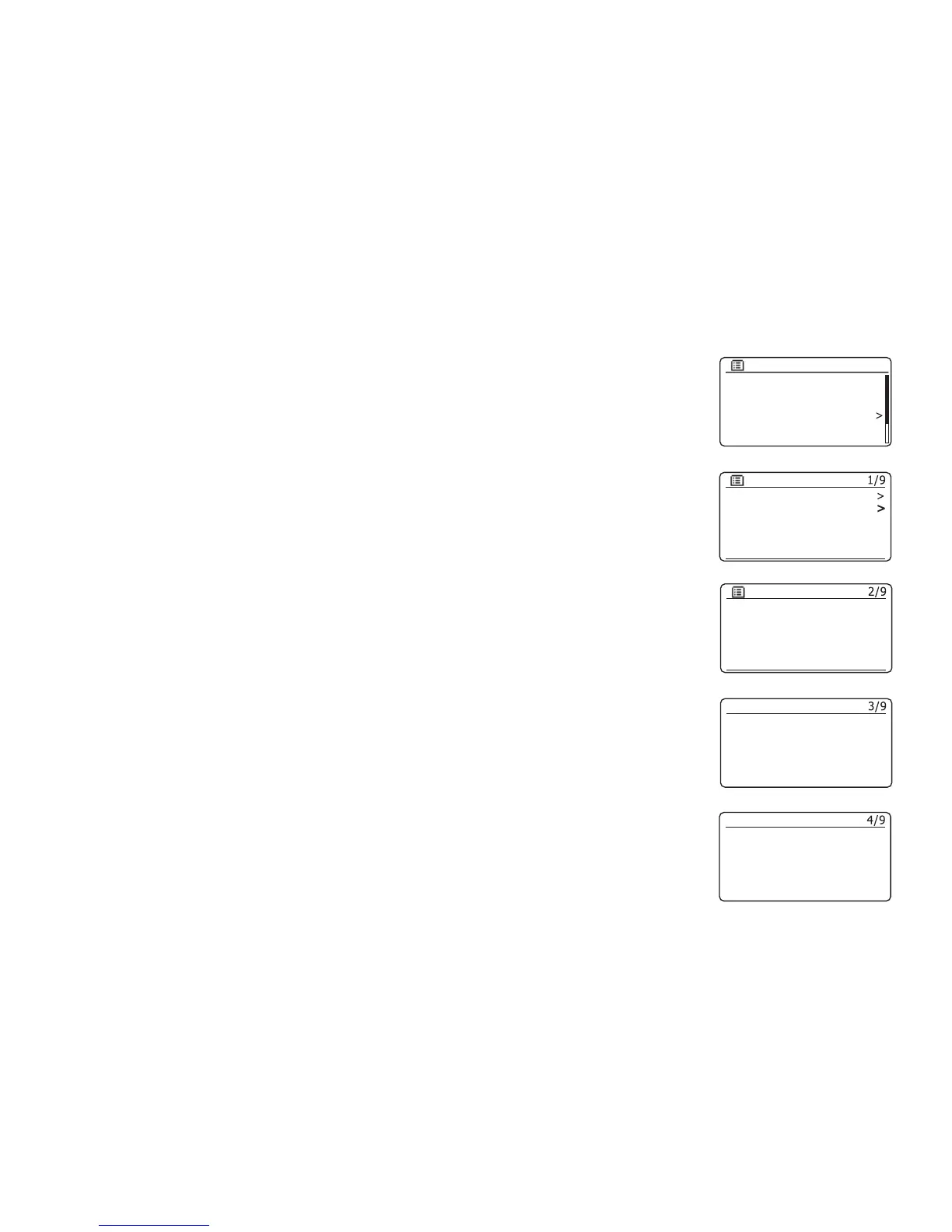 settings screens, shown by the '1 of 9' progress marker in the top right corner of the display. If you