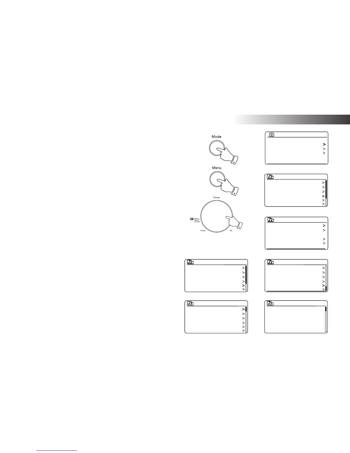 2. Press the Menu button to enter the main Internet Radio menu. Rotate