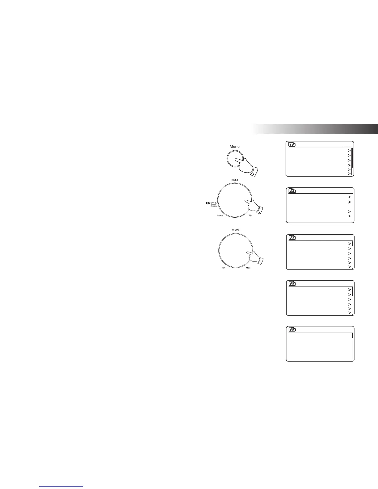 1. Press the Menu button to enter the main Internet Radio menu. Rotate