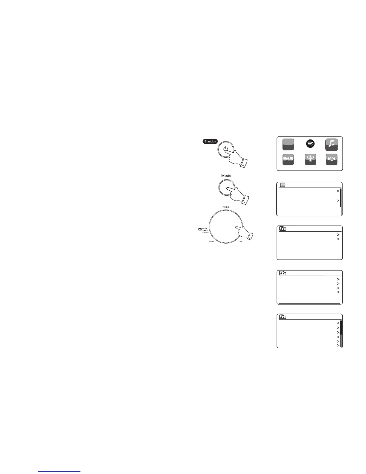 display shows multiple media types, select 'Music'. (Some UPnP