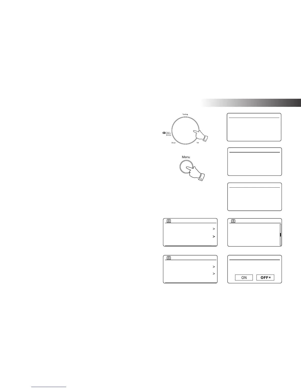 14. Rotate the Tuning/Select control to highlight 'ON' or 'OFF' as required