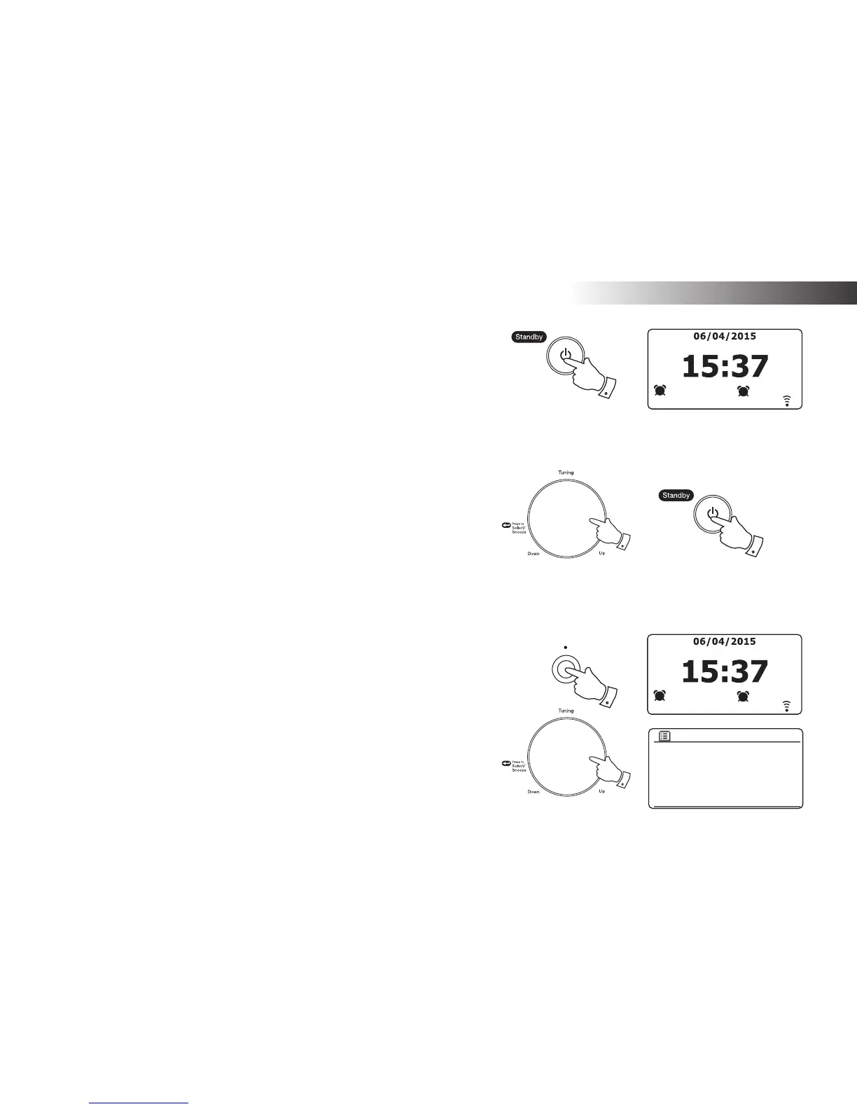 1. The buzzer or radio alarm can be silenced for 5 minutes by pressing the Tuning/