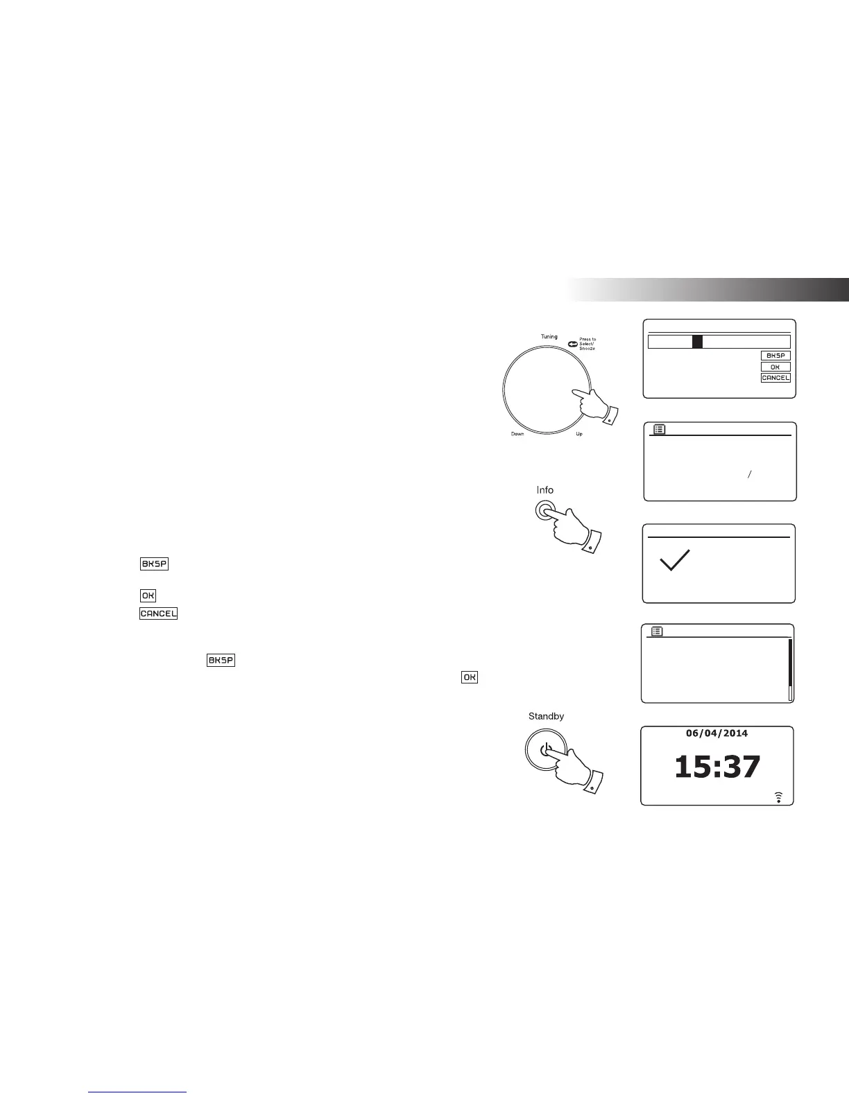 9. To enter the WEP or WPA key, characters are selected and entered using the