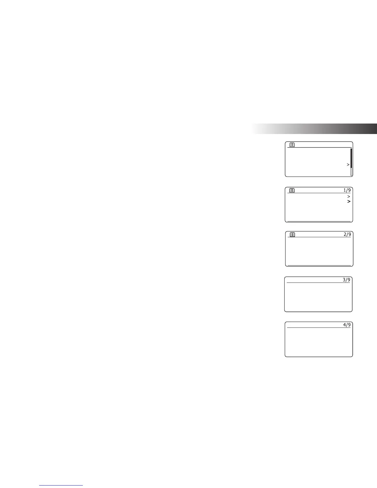 as nine settings screens, shown by the '1 of 9' progress marker in the top right corner of the display. If