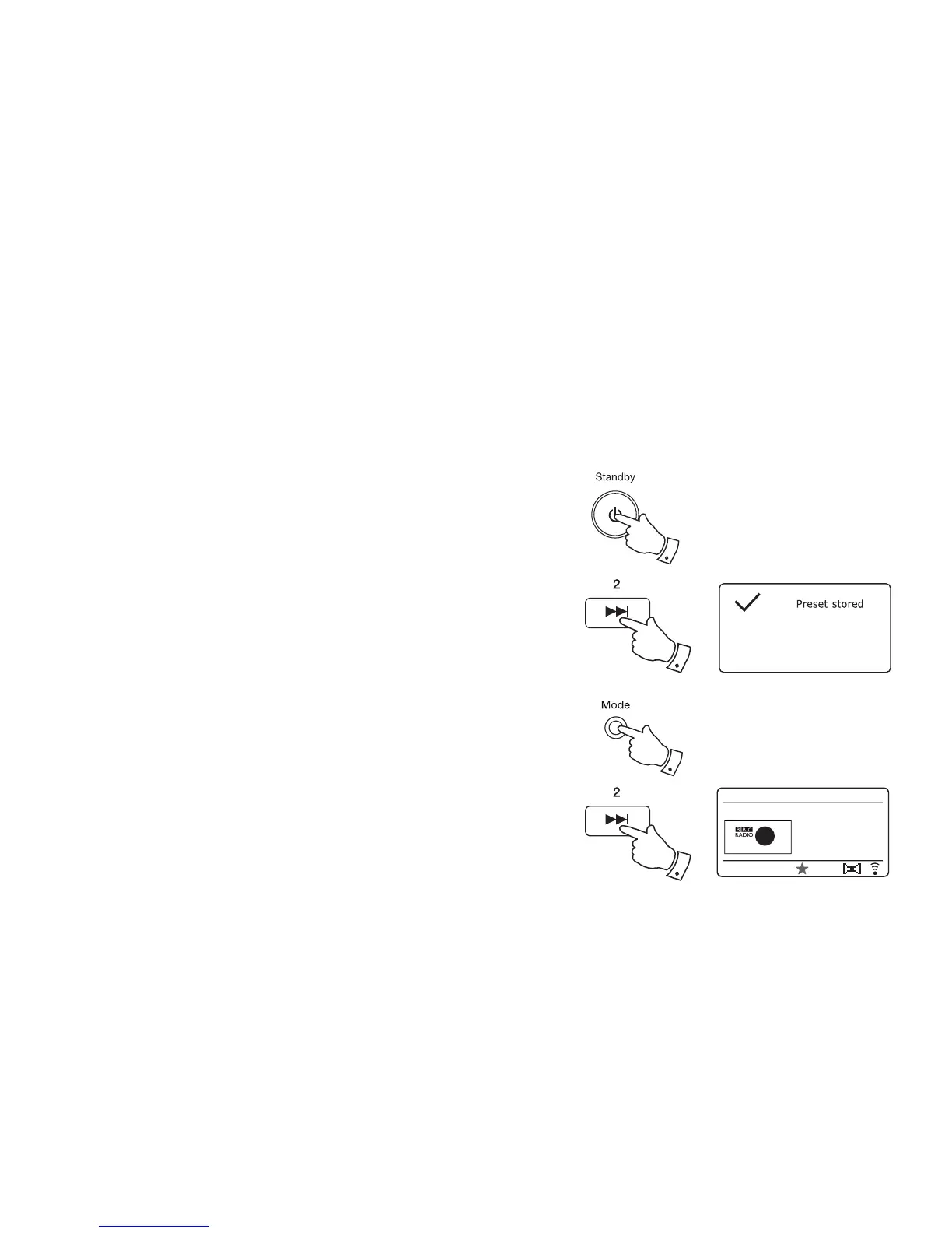 Preset button (1 - 5) until the display shows 'Preset stored'. The station will be stored