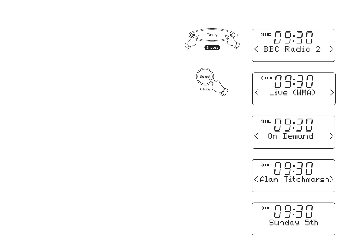 4. Press the Tuning Up or Down buttons to display the programme that you