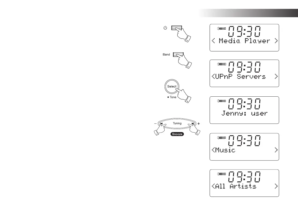 your UPnP server and then press the Select button. If the display