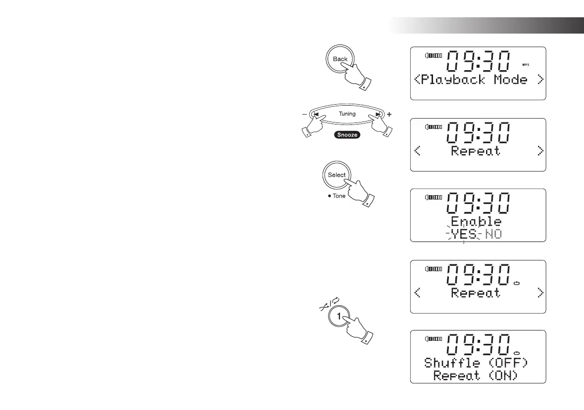 4. Press the Tuning Up or Down buttons until 'Repeat' is highlighted.