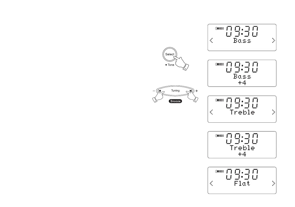 3. To adjust Treble, press the Tuning Up or Down buttons until 'Treble'