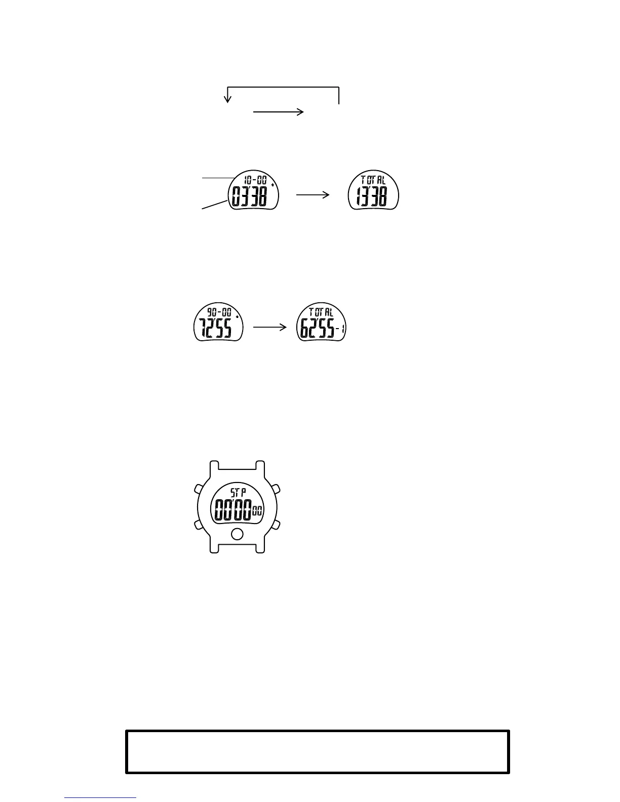 2. If the “TOTAL” time exceeds 99 minutes 59 seconds, the watch will display as follows: