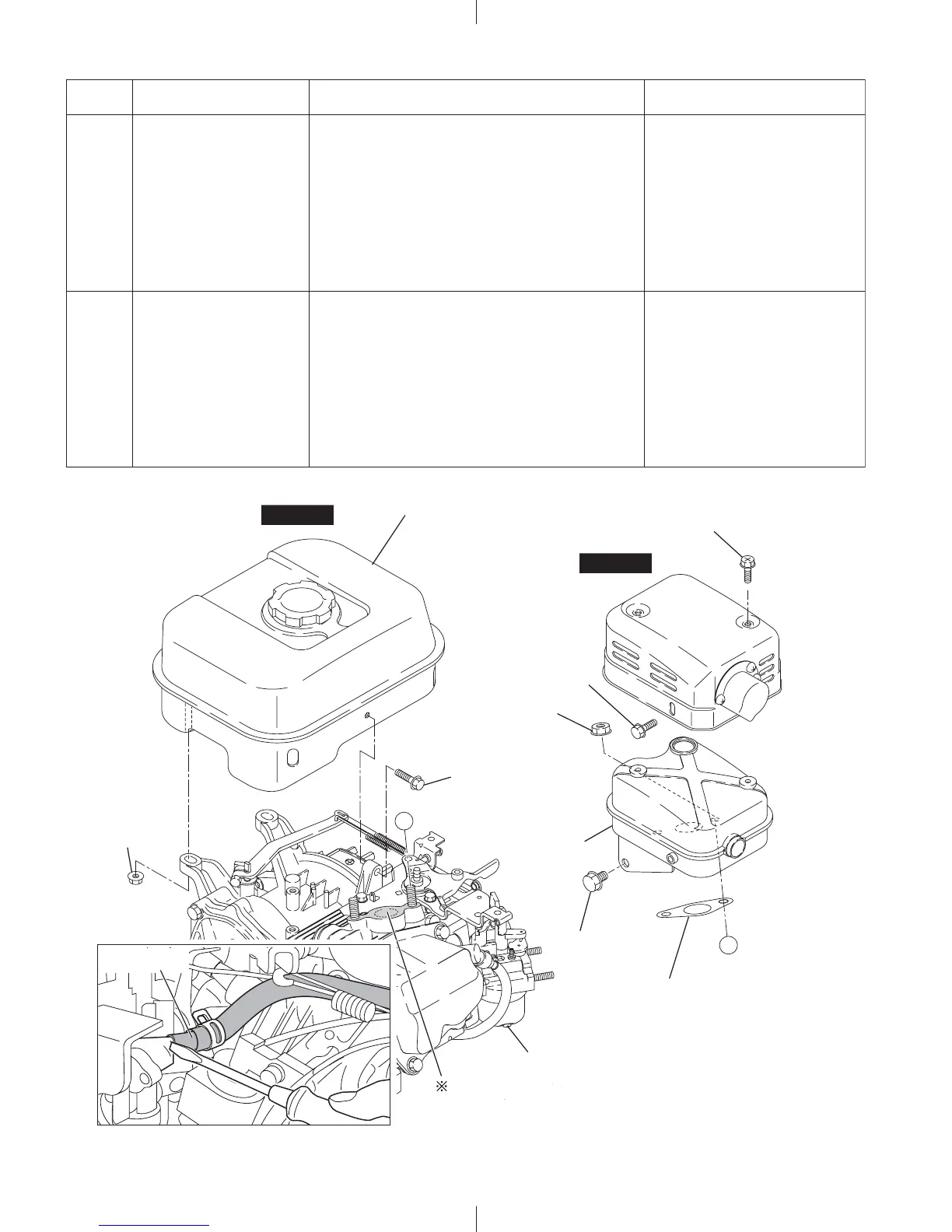 Muffler and Muffler cover (1) Remove the muffler cover from the