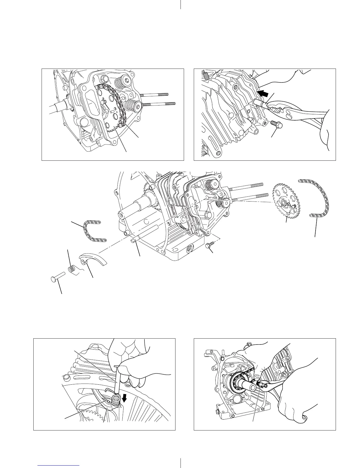 Fix the bolt to prevent the pin (camshaft) from coming out.