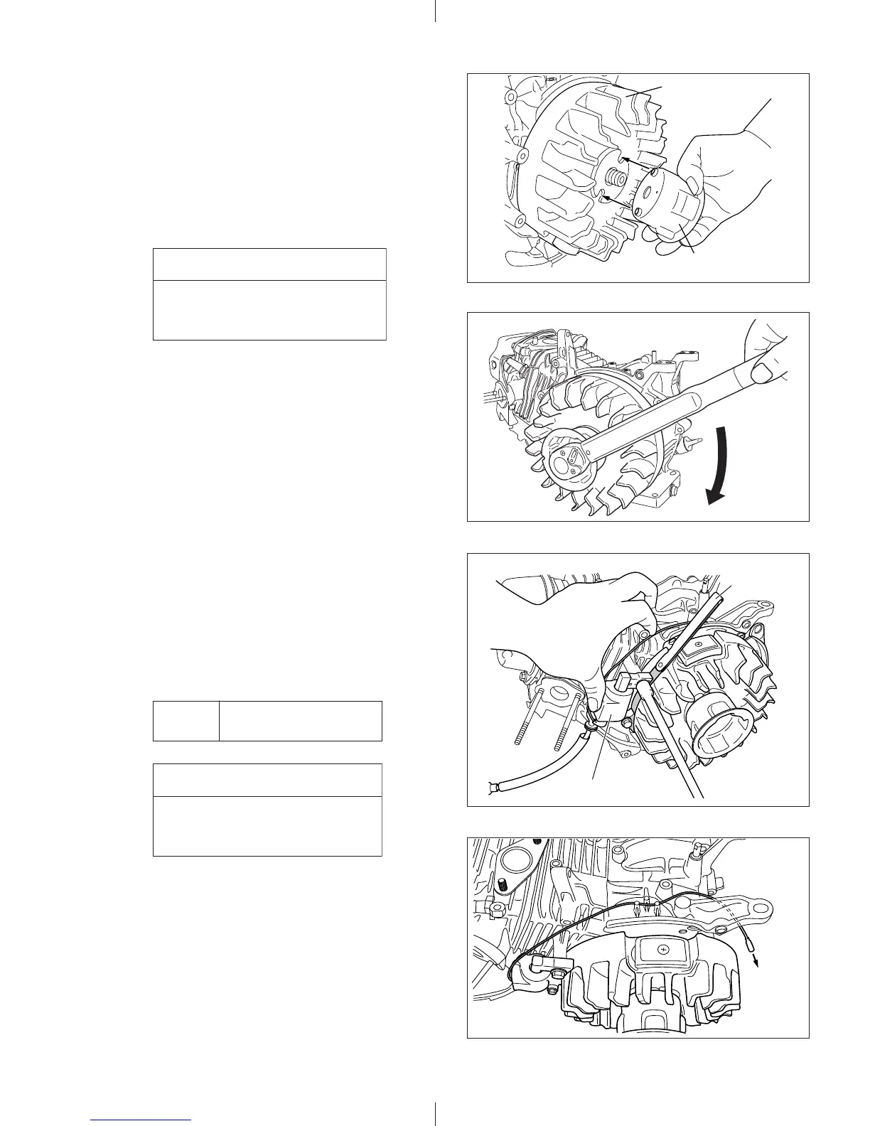 Align the 2 bosses of starting pulley with the depression of flywheel.