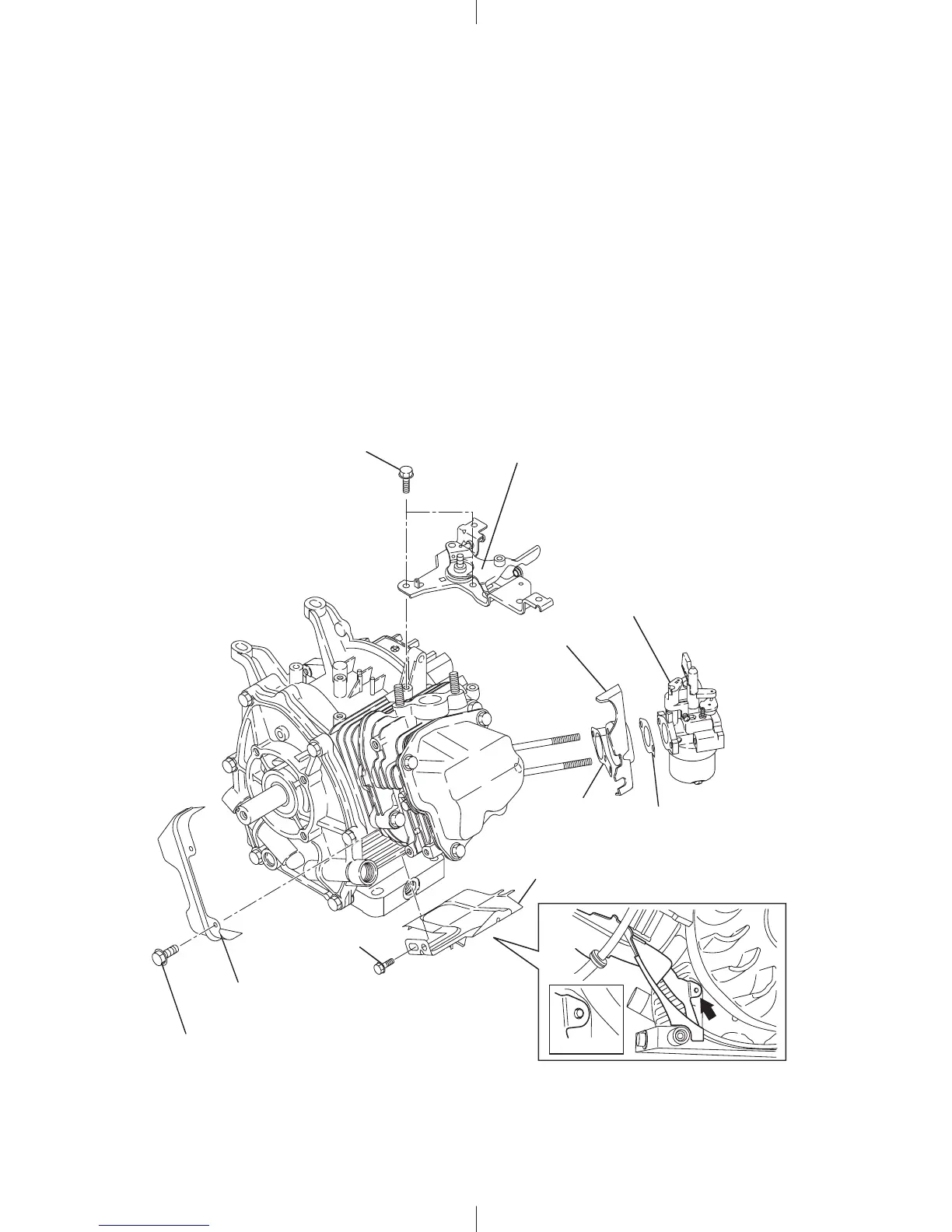 Mount the speed control lever and bracket, baffle 2 (head) and baffle 3 on the crankcase.