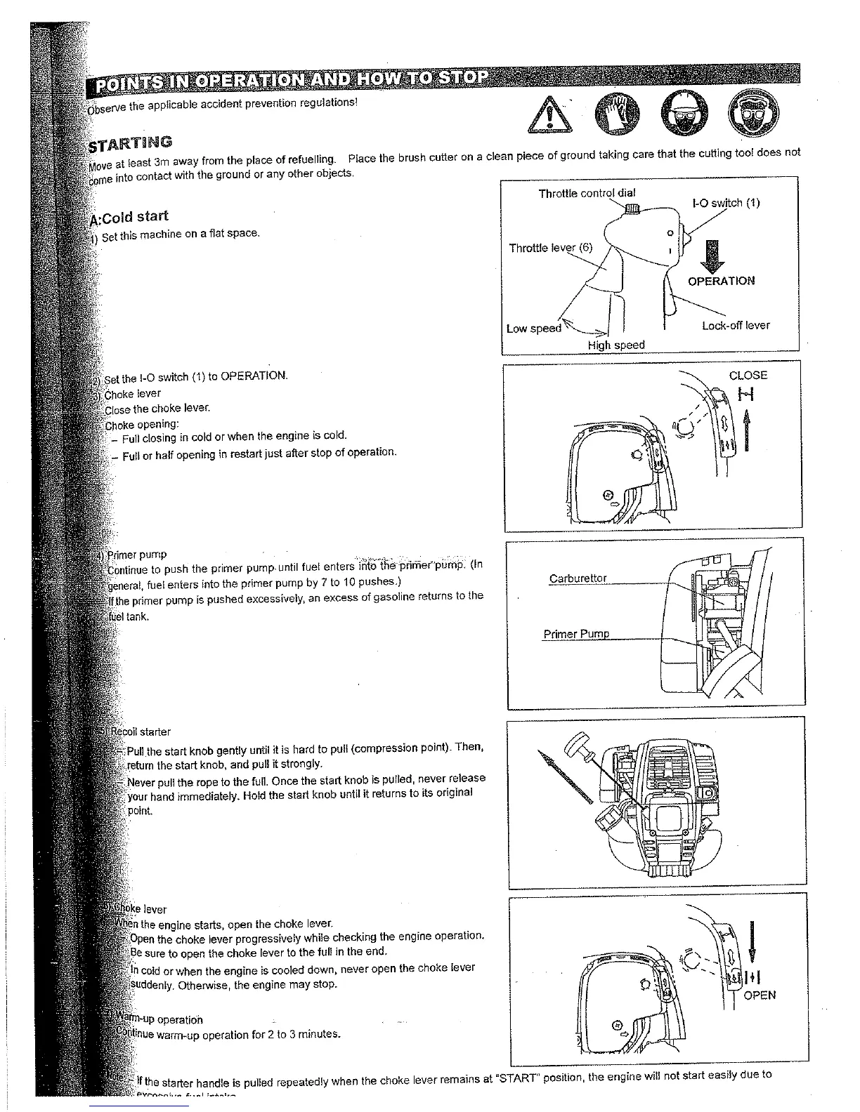 Robin BH3500 - OPERATION AND STOPPING PROCEDURES; Starting the Brush Cutter; Stopping the Brush Cutter