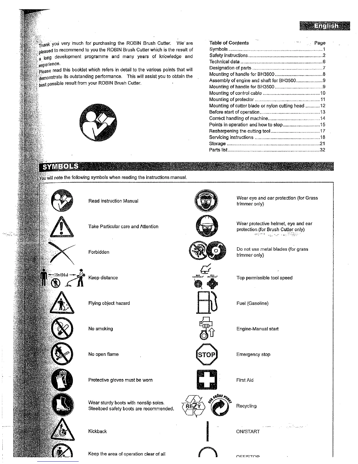 Robin BH3500 - SYMBOLS; Personal Protective Equipment Symbols