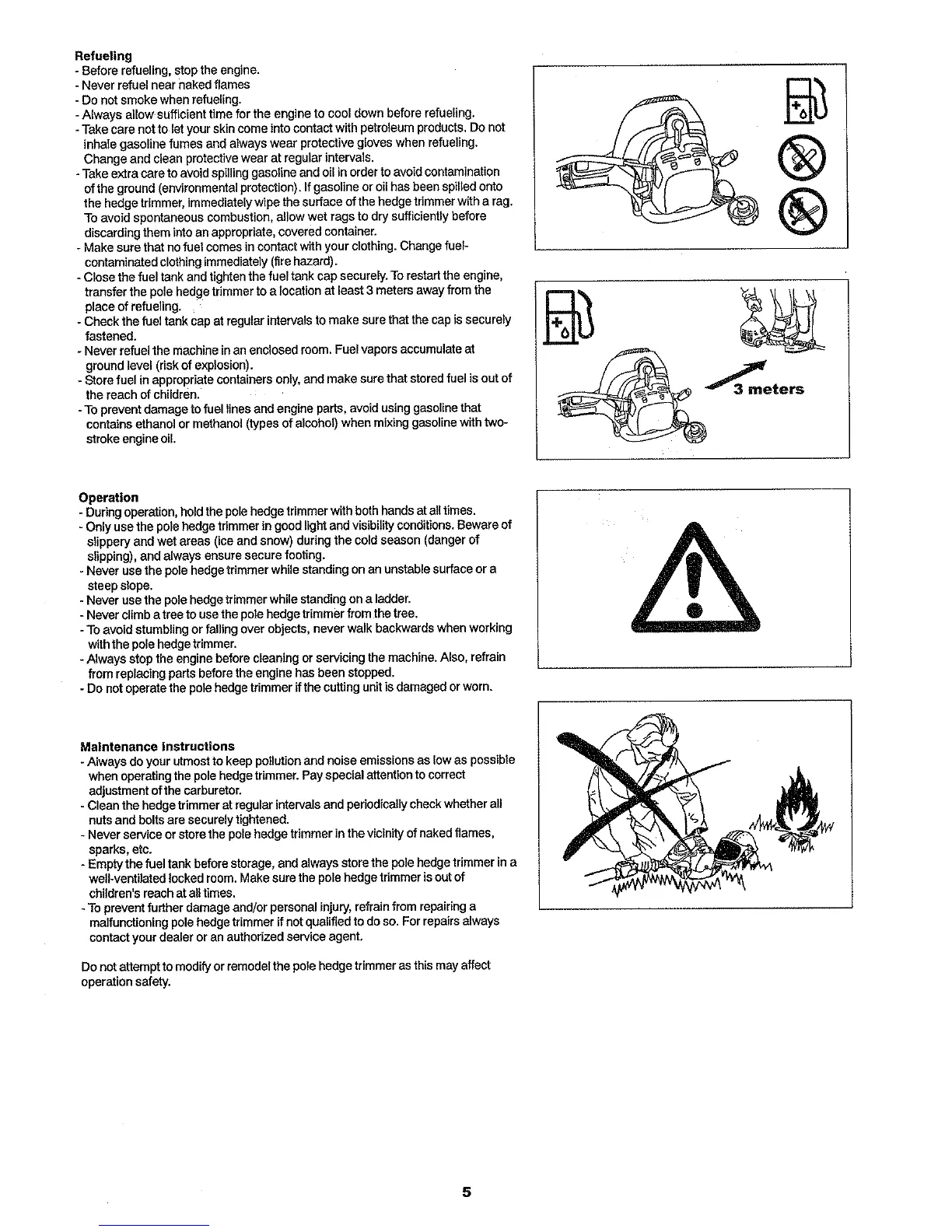 Robin BP2501 - OPERATION AND REFUELING; Refueling Precautions and Mixture; Safe Operation Practices