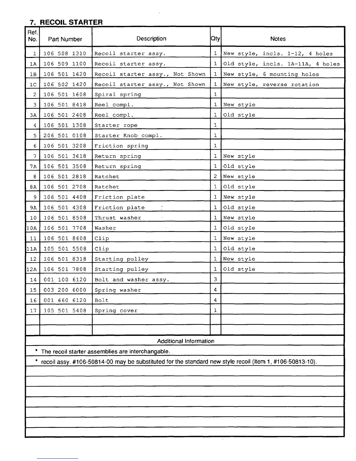 Recoil starter assy., Not Shown