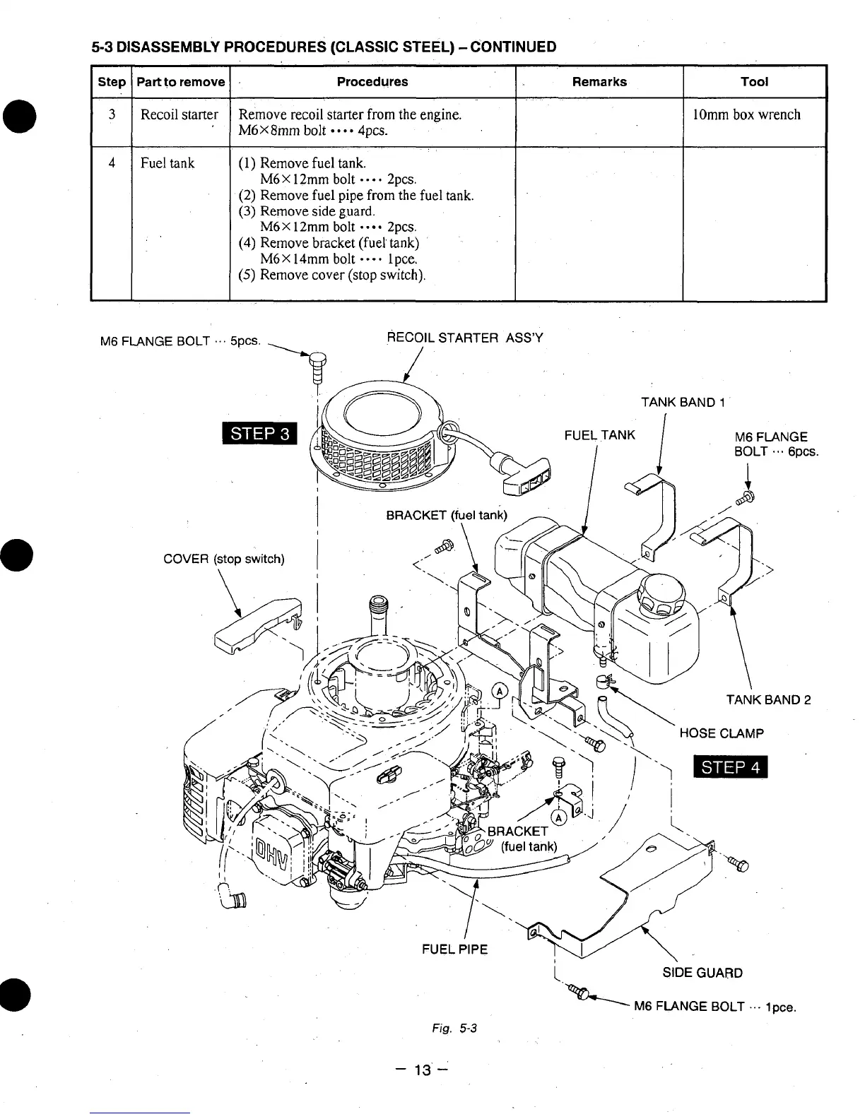 DISASSEMBLY PROCEDURES (CLASSIC STEEL) -CONTINUED
