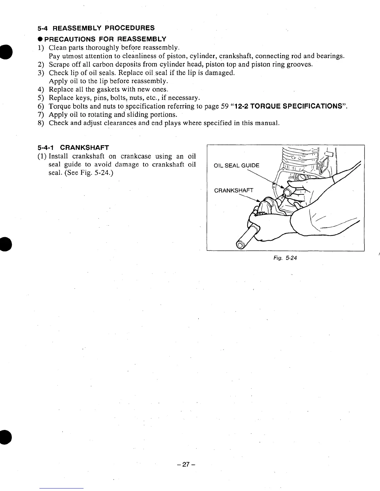Pay utmost attention to cleanliness of piston, cylinder, crankshaft, connecting rod and bearings.