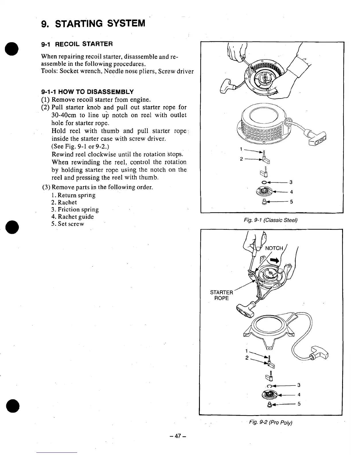 When repairing recoil starter, disassemble and re-