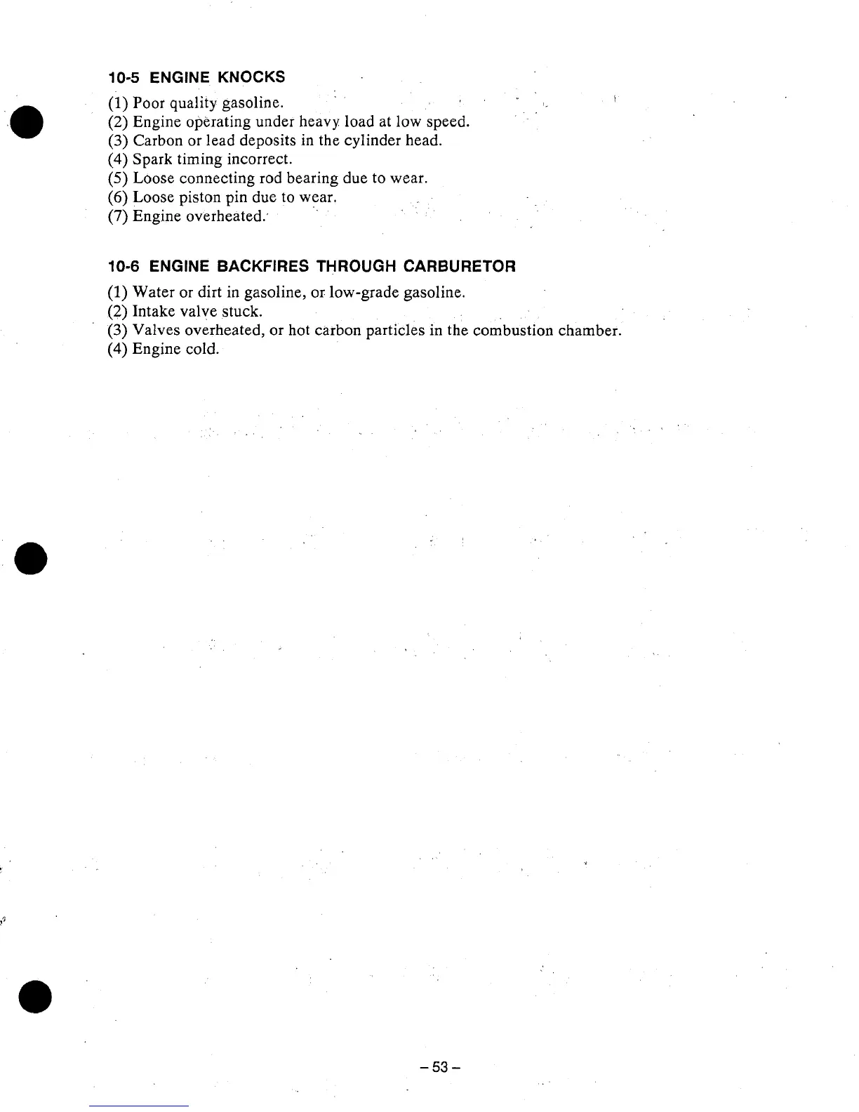 Robin EH18V OHV - 10-5 Engine Knocks; 10-6 Engine Backfires Through Carburetor