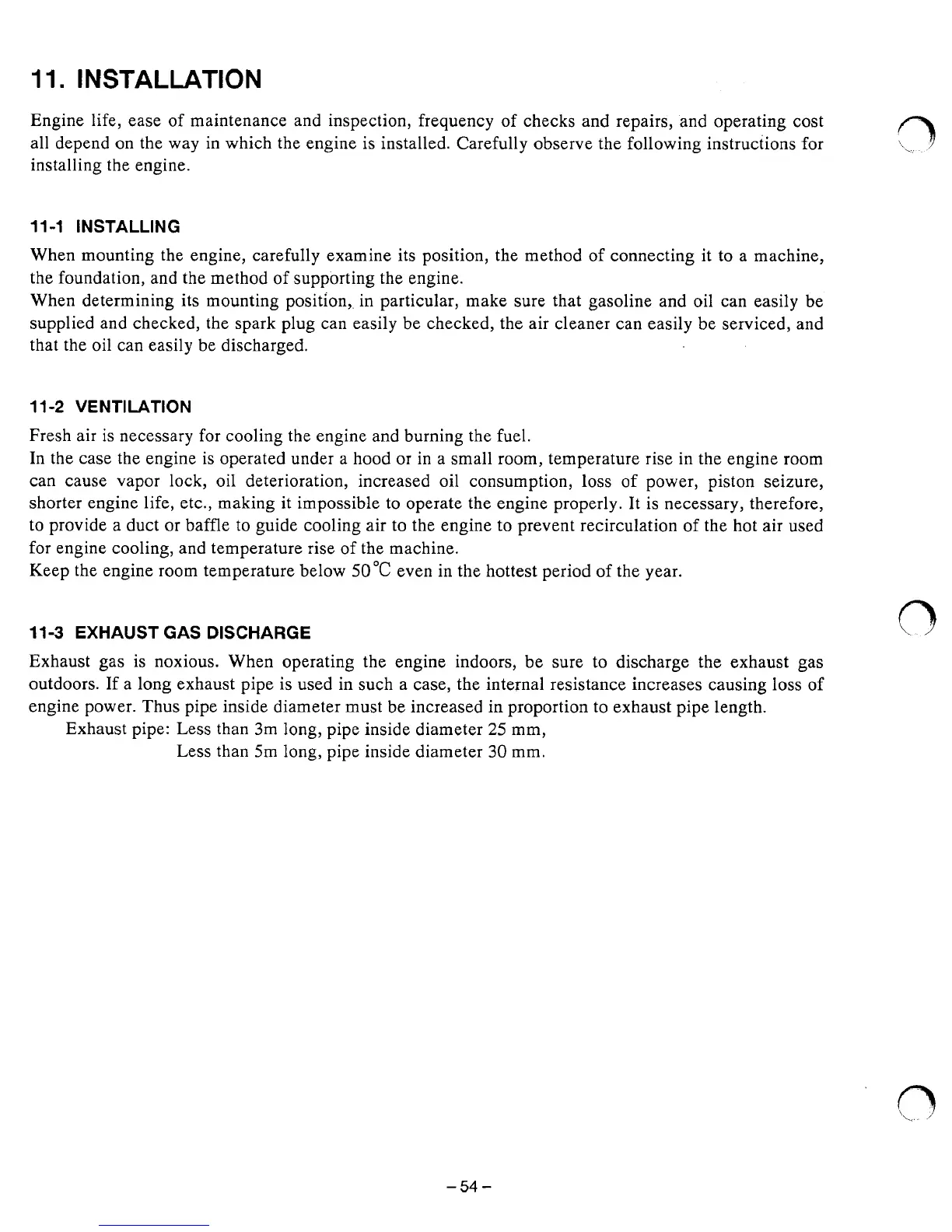 Exhaust gas is noxious. When operating the engine indoors, be sure to discharge the exhaust gas