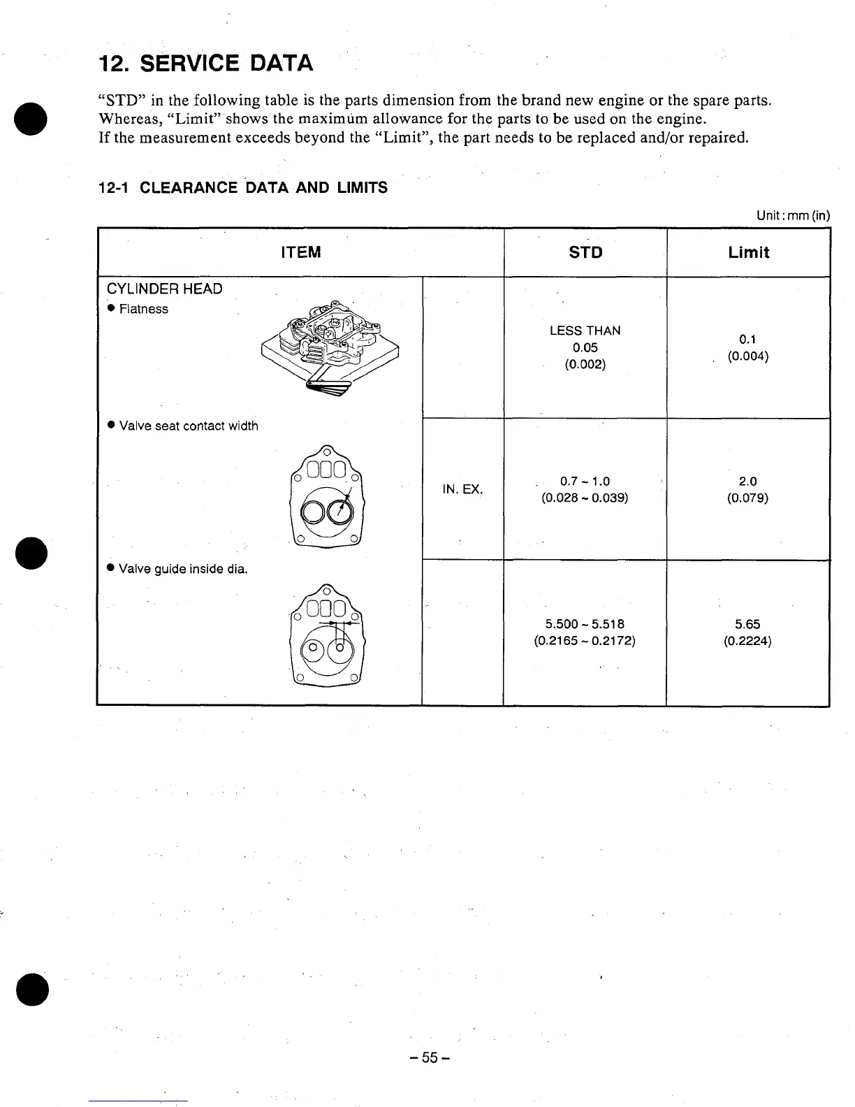 Robin EH18V OHV - Service Data; 12-1 Clearance Data and Limits