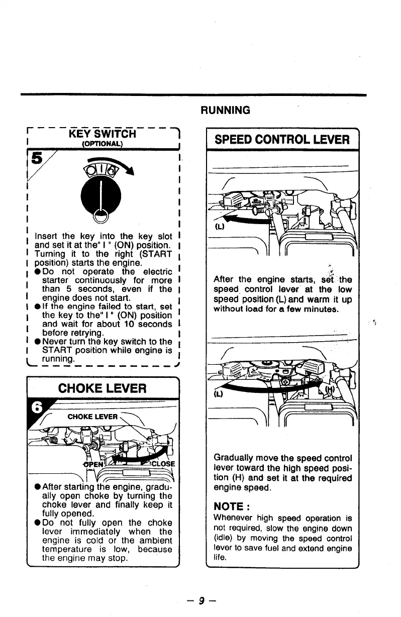 Robin EH25-2D - Running; Key Switch; Choke Lever