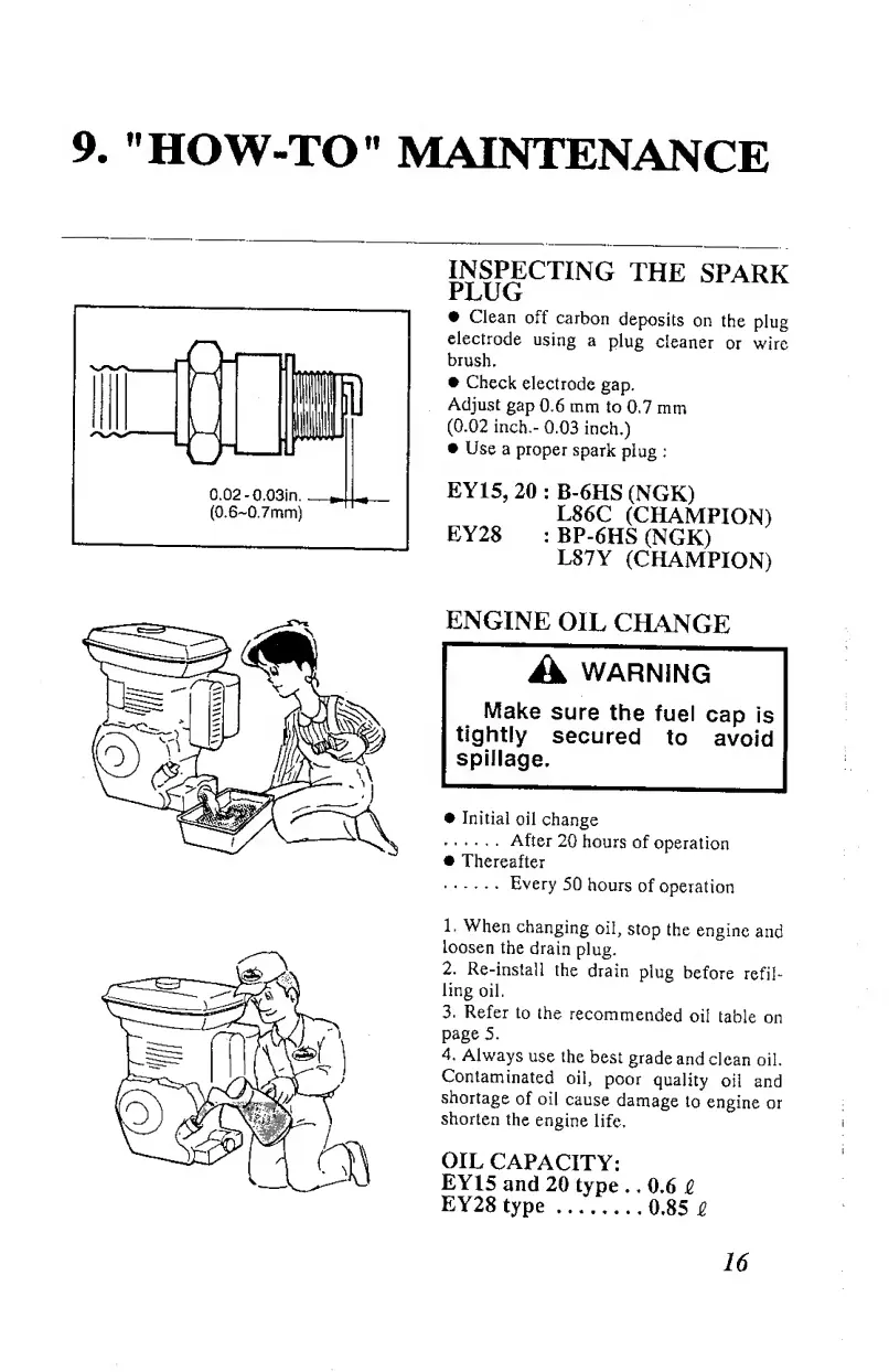 Robin EY15D - How-To Maintenance; Inspecting the Spark Plug; Engine Oil Change