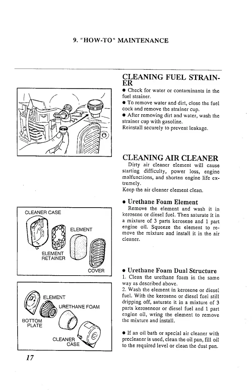 Robin EY15D - Cleaning Fuel Strain¬ er; Cleaning Air Cleaner
