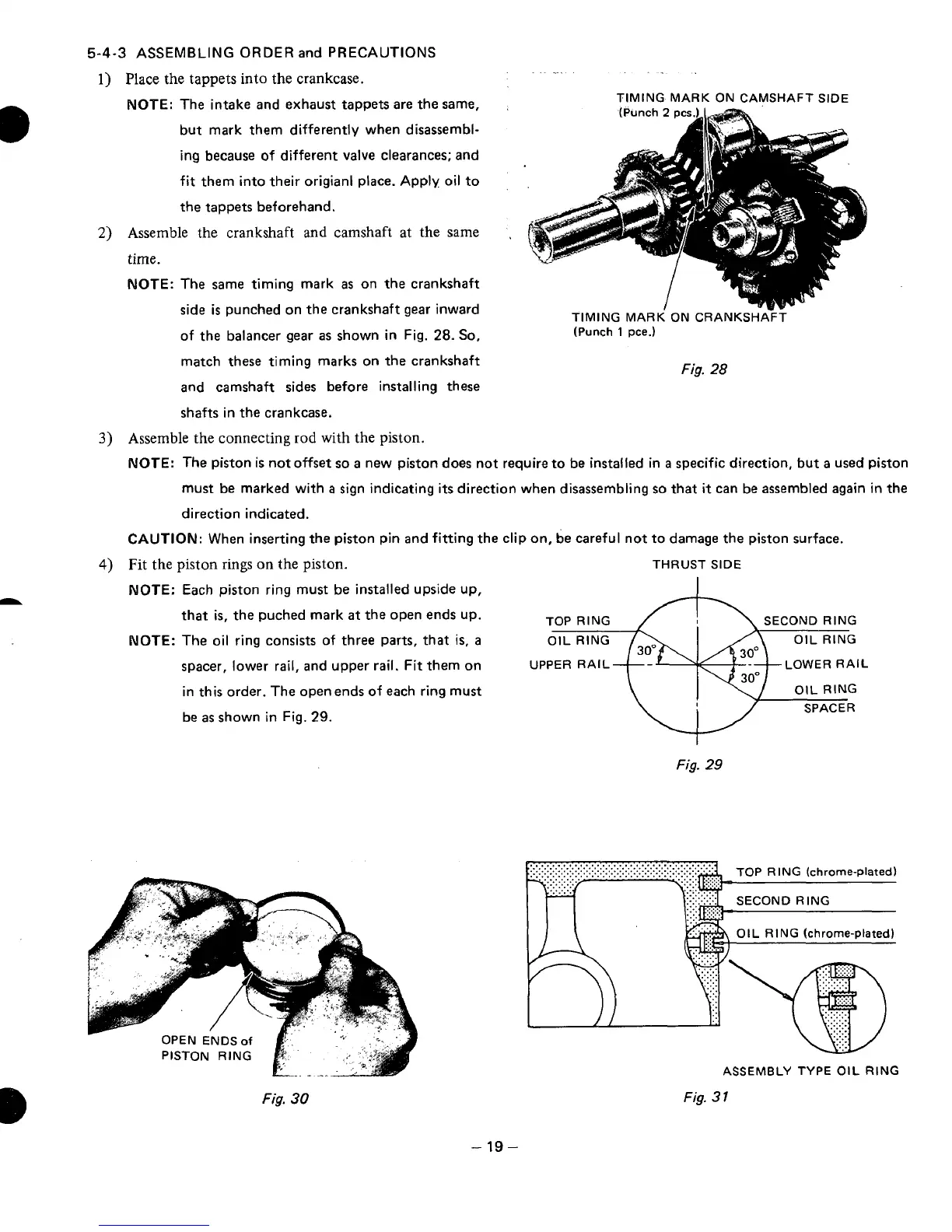 When inserting the piston pin and fitting the clip on, be careful not to damage the piston surface.