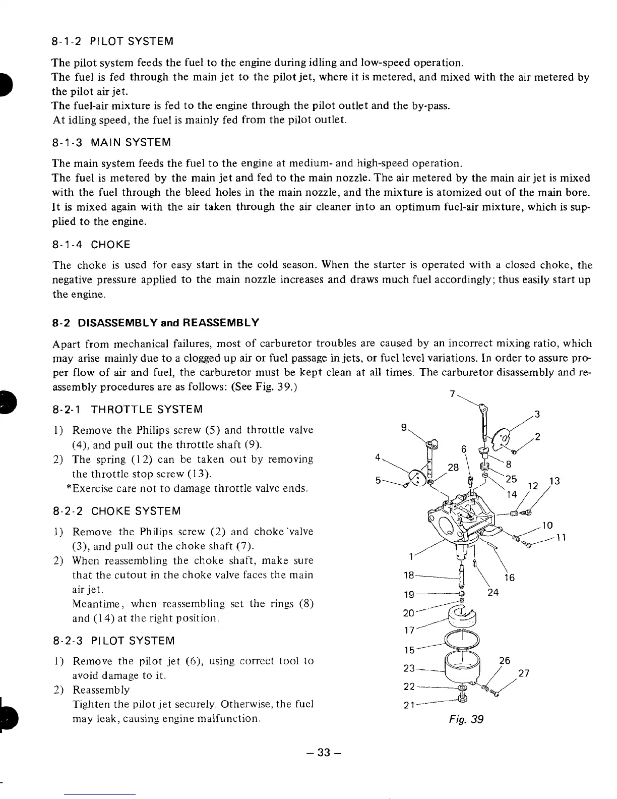 and fuel, the carburetor must be kept clean at all times. The carburetor disassembly and re-