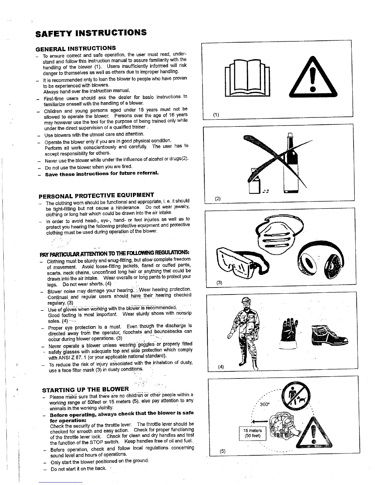 Robin FL500 - SAFETY INSTRUCTIONS; GENERAL INSTRUCTIONS; PERSONAL PROTECTIVE EQUIPMENT; STARTING UP THE BLOWER