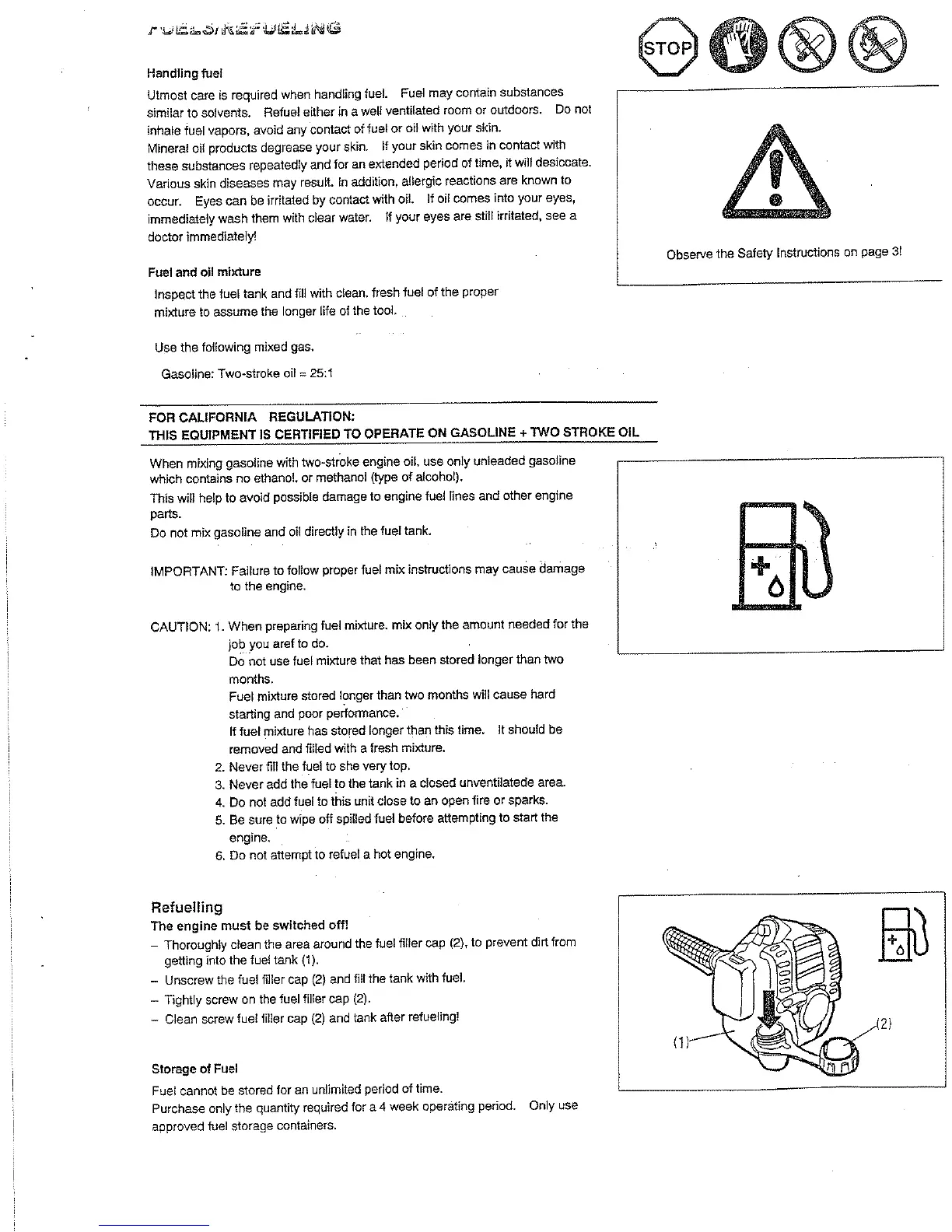 Robin NB2001 - FUEL;REFUELING; Handling fuel; Fuel and oil mixture; Refuelling