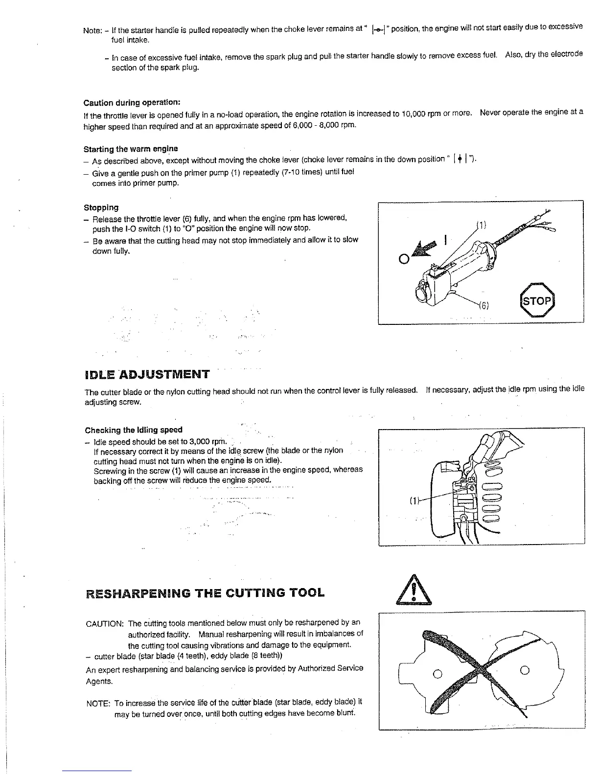 Robin NB2001 - Caution during operation:; Engine Speed Warnings; Starting the warm engine; Warm Engine Start Steps