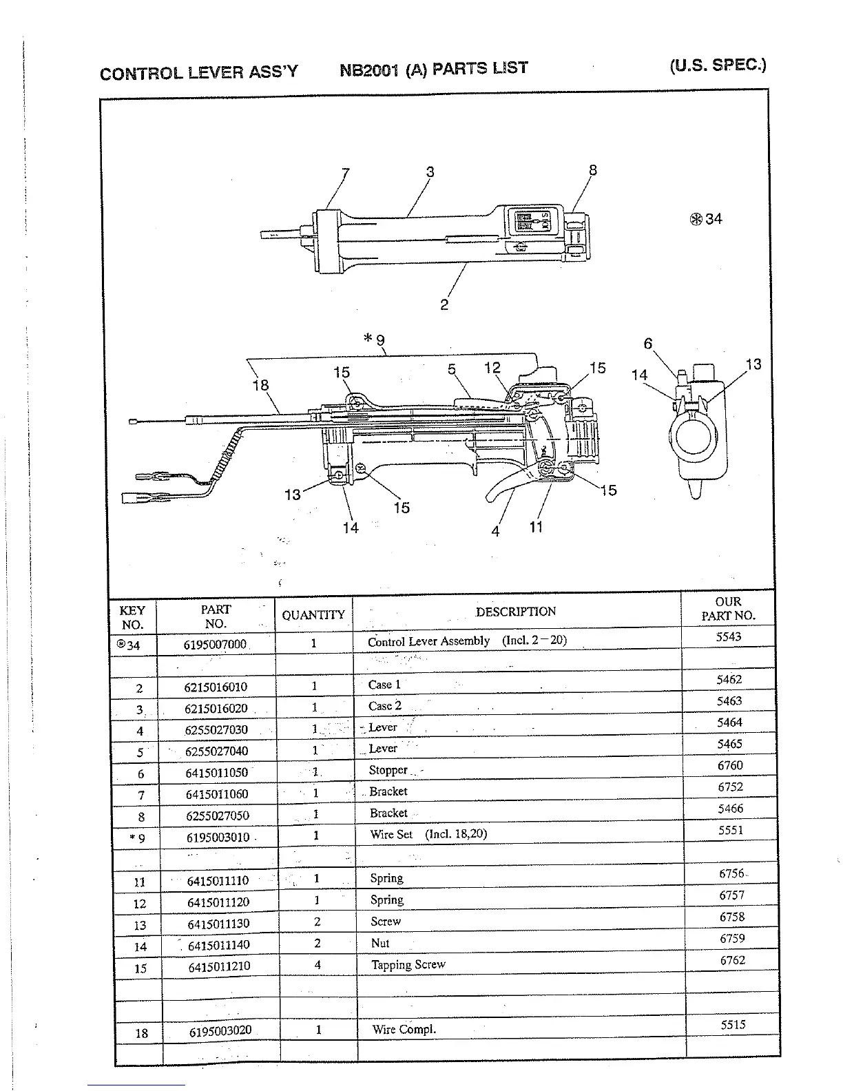 Robin NB2001 - Control Lever Assembly Components