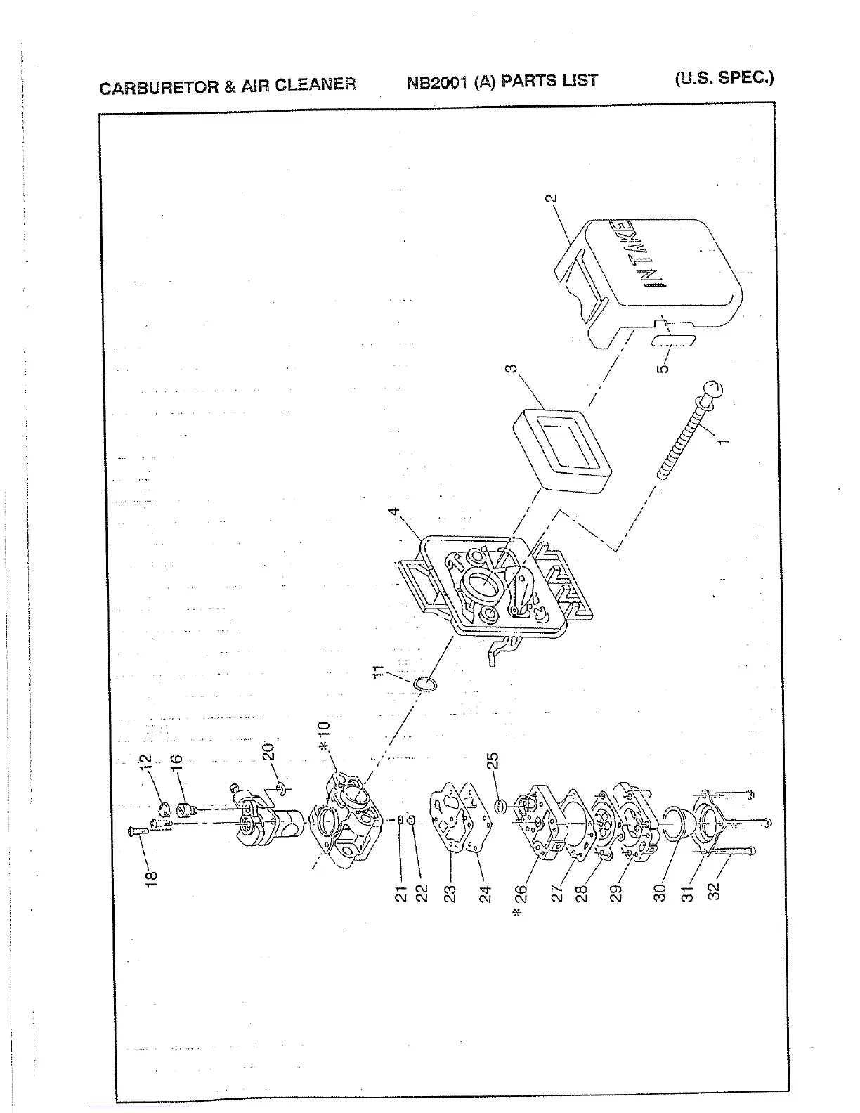 Robin NB2001 - Carburetor & Air Cleaner Components