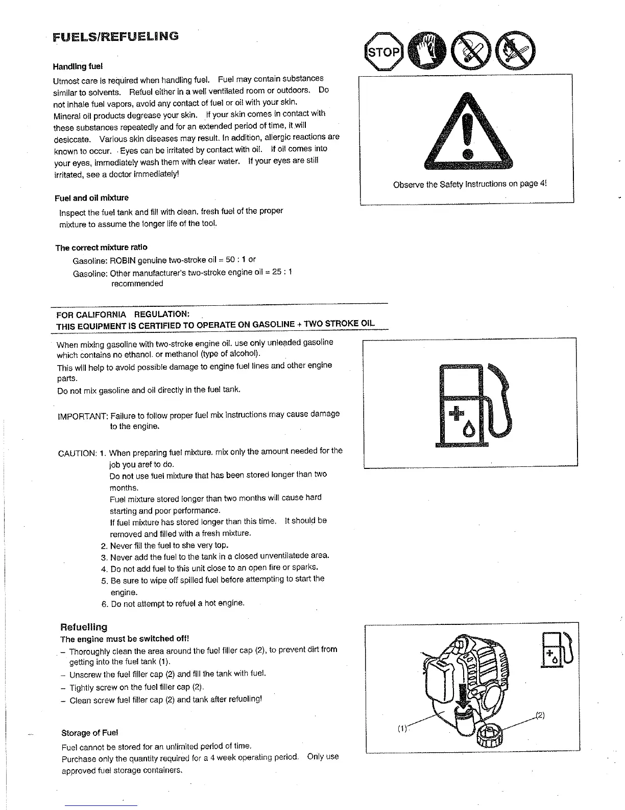 Robin NB2050 A - FUELS;REFUELING; Handling fuel; Fuel and oil mixture; Refuelling