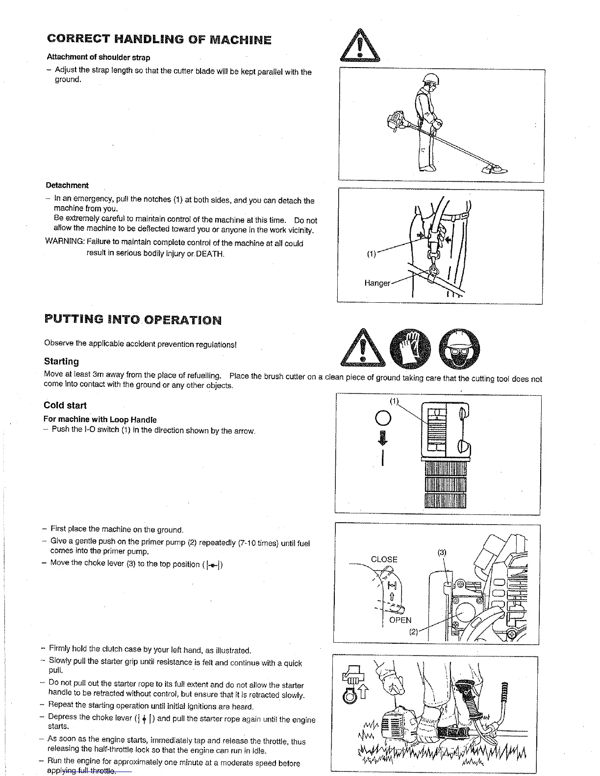 Robin NB2050 A - CORRECT HANDLING OF MACHINE; Attachment of shoulder strap; Detachment; PUTTING INTO OPERATION