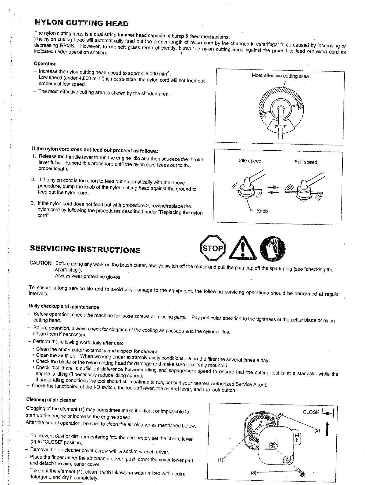 Robin NB2050 A - NYLON CUTTING HEAD; Operation; SERVICING INSTRUCTIONS; Daily checkup and maintenance