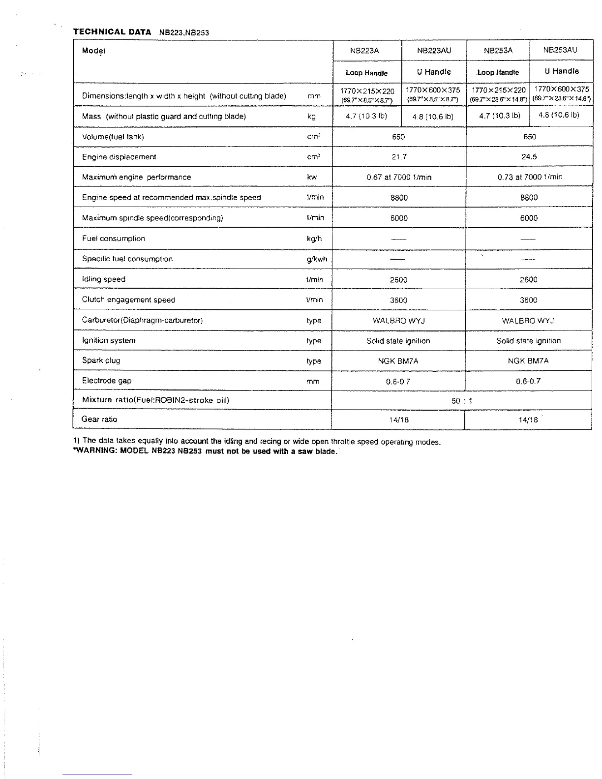 Robin NB223 - TECHNICAL DATA NB223,NB253