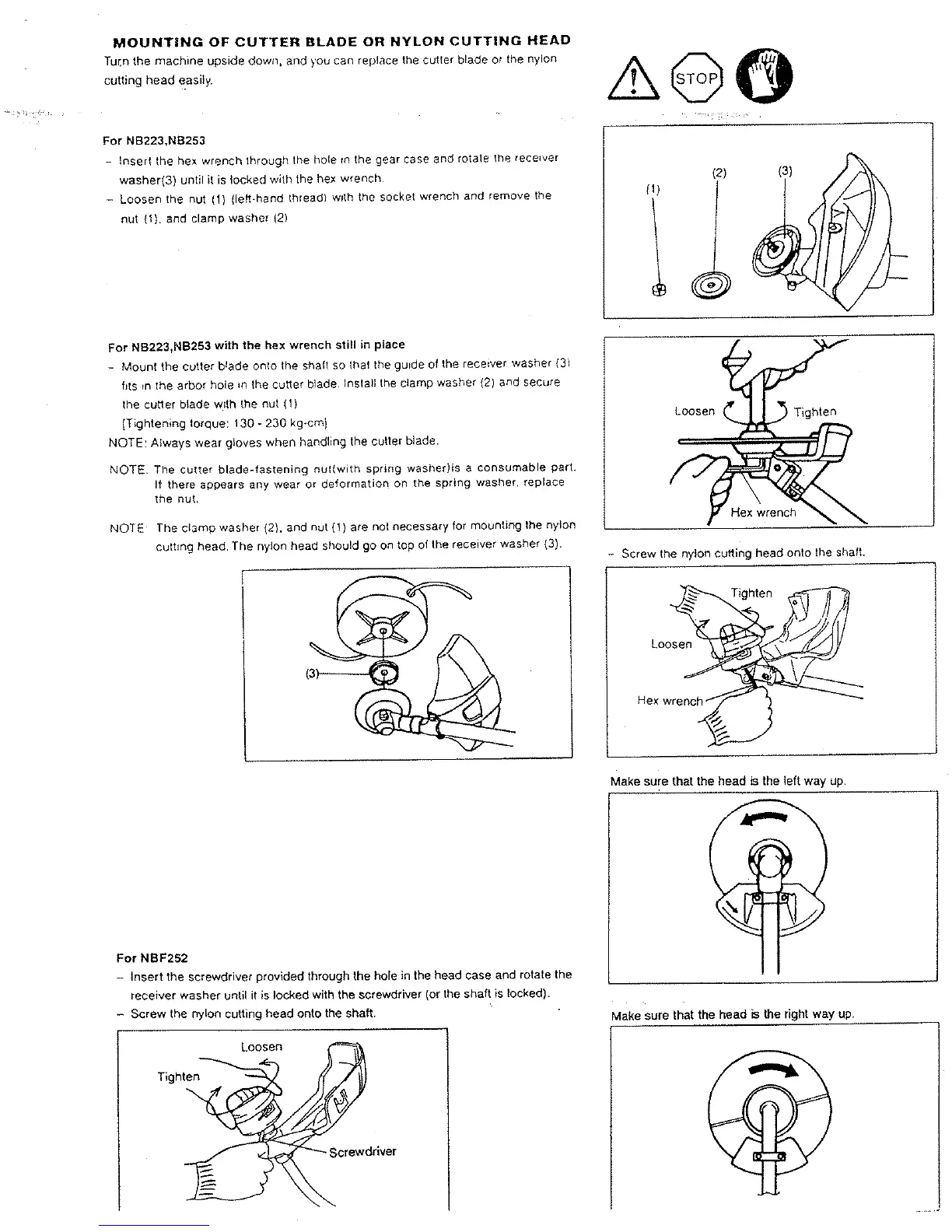 Robin NB223 - MOUNTING OF CUTTER BLADE OR NYLON CUTTING HEAD; NB223;NB253 Blade;Head Mounting; NBF252 Head Mounting