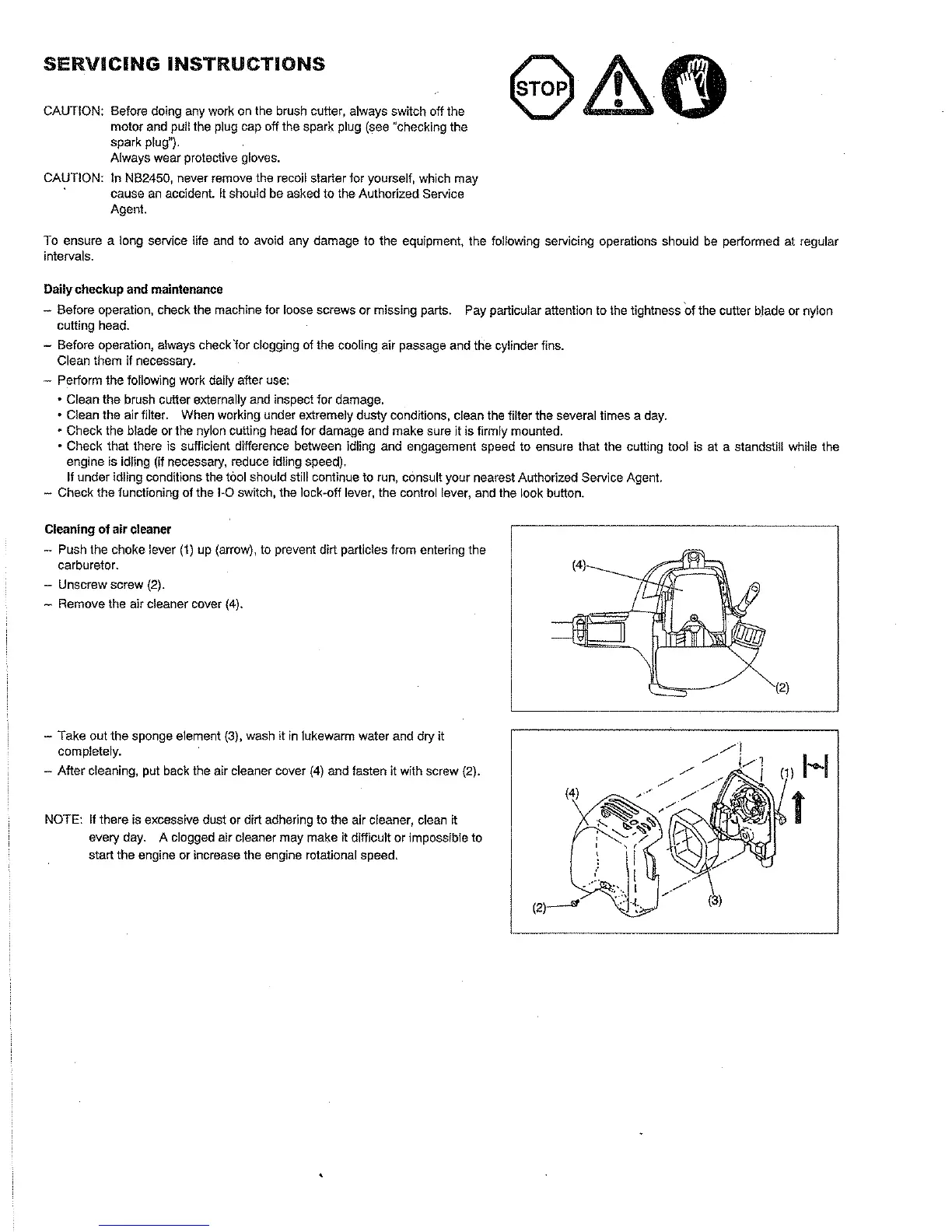 Robin NB2450 - Servicing and Maintenance Instructions; Daily Checks and Cleaning