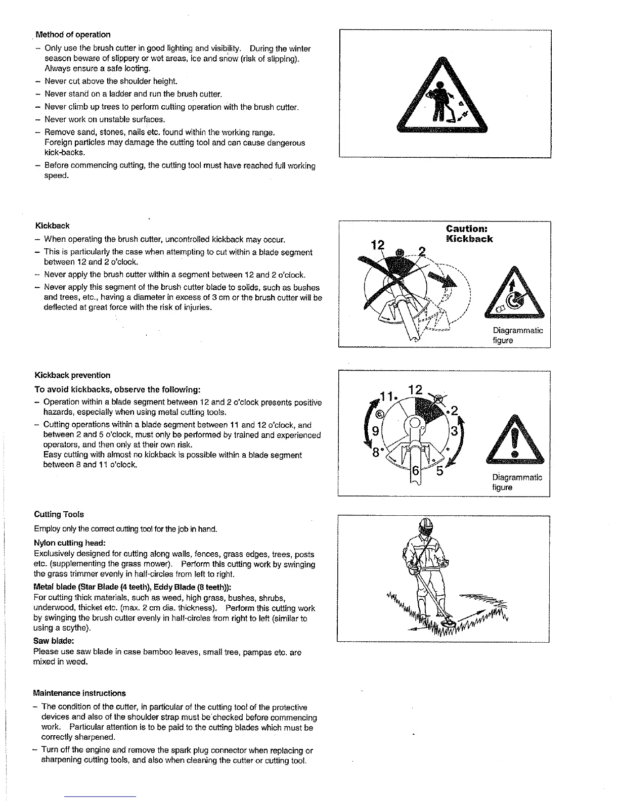 Robin NB2450 - Method of Operation and Handling; Understanding and Preventing Kickback; Cutting Tools and Attachments